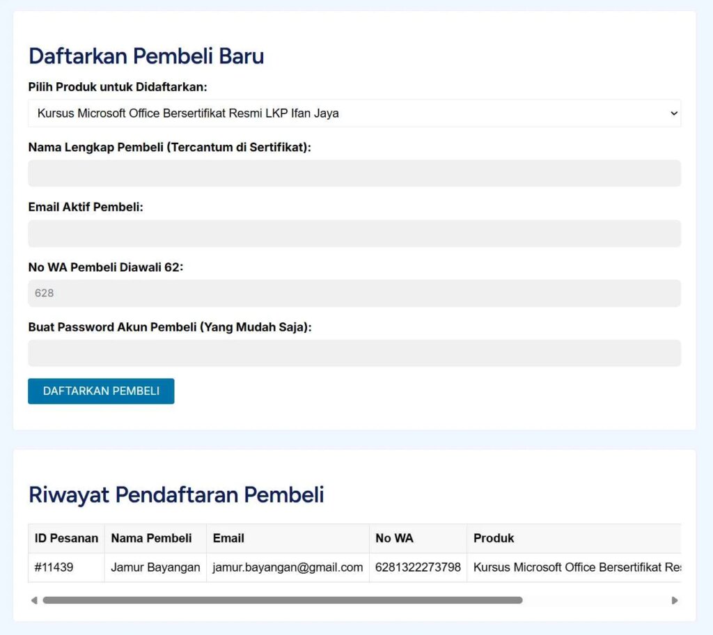 Tenang, kamu akan mendapatkan dasbor reseller. Kamu tinggal isi formulir mendaftarkan pembelinya, beres deh.